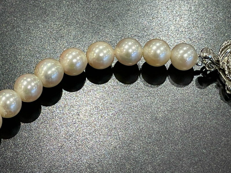 最も心配されるのが、ネックレスの糸が突然切れてしまうことです。糸は経年劣化や使用による摩耗で徐々に弱くなっていきます。使っていなくても、糸が緩んでくることがあります。大切な行事の最中などに切れて真珠が散らばってしまうと、非常に困りますよね。