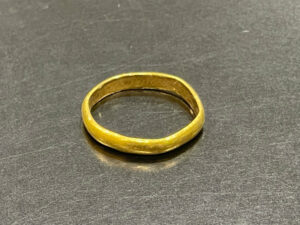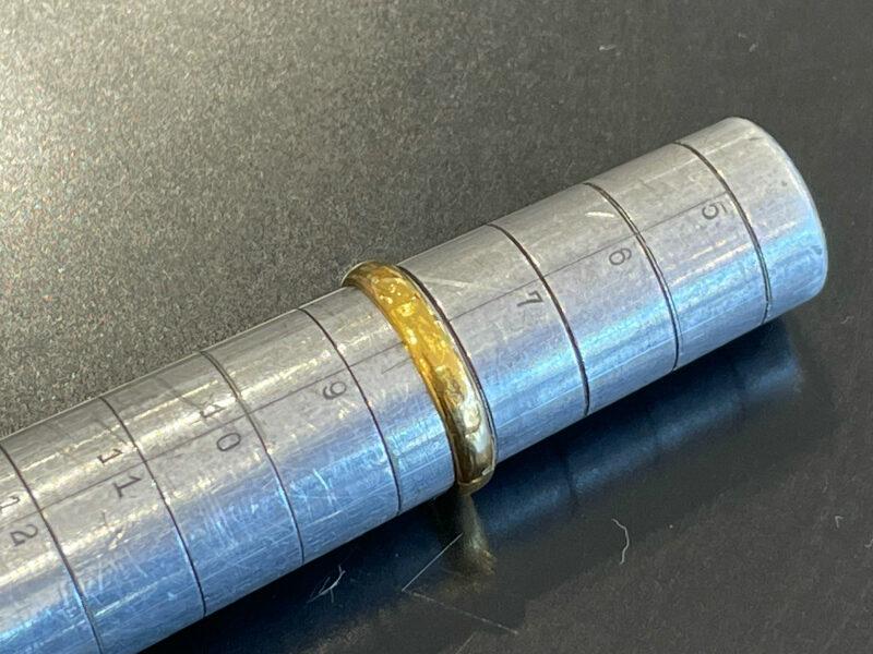 お客様は約60年つけっぱなしいで、サイズが変わったこともありだいぶ変形しキズも目立っていました。指輪のサイズが合ってないと、キズや変形のリスクが高まるので注意しましょう。