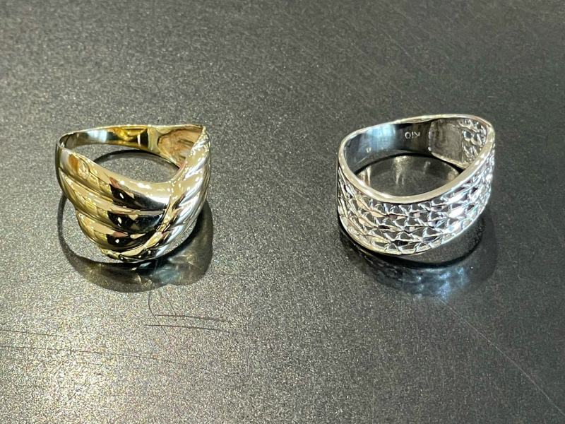 ・刻印や模様への影響・・・指輪の内側に刻印がある場合、その部分を避けて加工しますが、指輪全体に模様がある場合は、加工部分の模様が消えてしまうことがあります。
