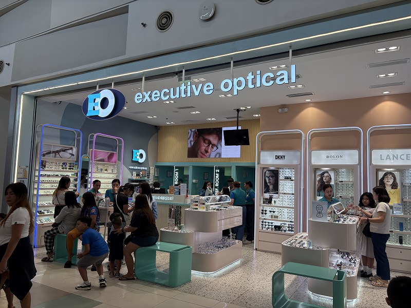 Ideal Vision Center:というフィリピン国内に多数の店舗を持つ大手ローカルチェーン、EO Executive Optical:という大手眼鏡チェーンもあれば、日本のJINSやオンディーズも出店しています。