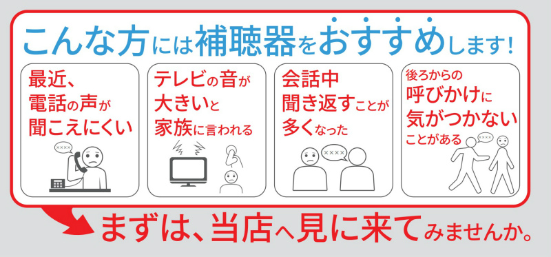 購入を強要するような事はございませんのでお気軽にご来店の上、聞こえの悩みをスタッフにご相談ください。
